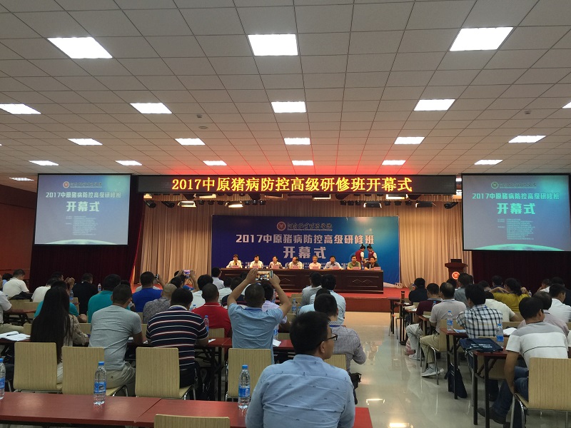9月16日上午8:30,由学校主办,河南省猪病防控工程技术研究中心、必赢242net、海润资产经营有限公司承办的2017中原猪病防控高级研修班开幕式在公司龙子湖校区老员工活动中心报告厅隆重举行。学校副董事长张卫宪、省畜牧局医政药政处处长周瑞兰、河南农大牧医工程学院王川庆教授、教务处处长边传周教授、猪病防控工程技术研究中心主任李文刚教授、海润资产经营有限公司总经理刘玉锋、科研处副处长胡华锋等领导出席开幕式。来自省内外养猪产业一线的技术、管理人员200余人参加了活动。开幕式由动物医公司党总支书记王春明主持。