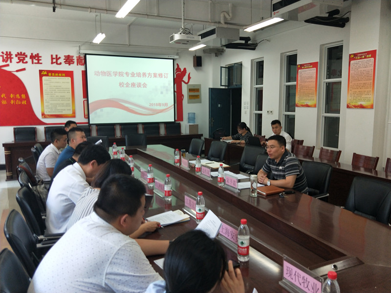 2018年9月12日中午1点,在生工组团C401召开了公司2018年人才培养方案修订座谈会,会议由学院教学秘书吴玉臣主持,公司教学副经理宋予震和相关校企合作的企业负责人参加了会议。