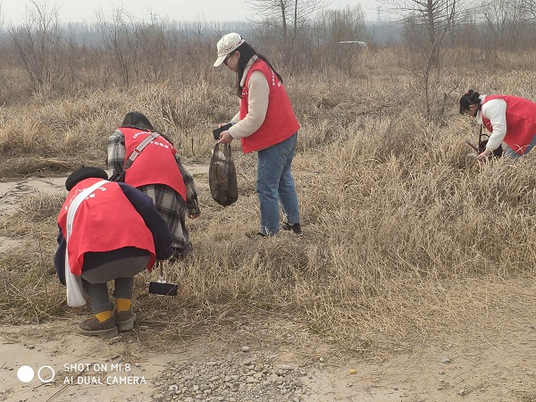 阳春三月,春暖花开。一大早,公司志愿者一行15人先在校北门口集合,然后乘坐地铁又转乘公交,历经两个多小时终于来到了黄河花园口游览区。到达之后,志愿者们分头行动,有的志愿者捡拾地上和水边的白色垃圾,据悉这些垃圾大都是一些市民在黄河边踏青赏花、娱乐休闲时随意丢弃的垃圾,有的烧烤后留下一片狼藉,有些垃圾一半埋了在沙土中,志愿者们一点点地给它挖出来,一阵风吹来,顿时尘土飞扬,细沙满天,使人睁不开眼睛,但大家并没有说累嫌脏,干的热火朝天;有的志愿者给市民派发印有环保知识的宣传单,呼吁广大市民积极参与到保护母亲河的行动中来;有的给市民讲解如何正确分类、投放、处理垃圾,减少使用塑料制品的使用。