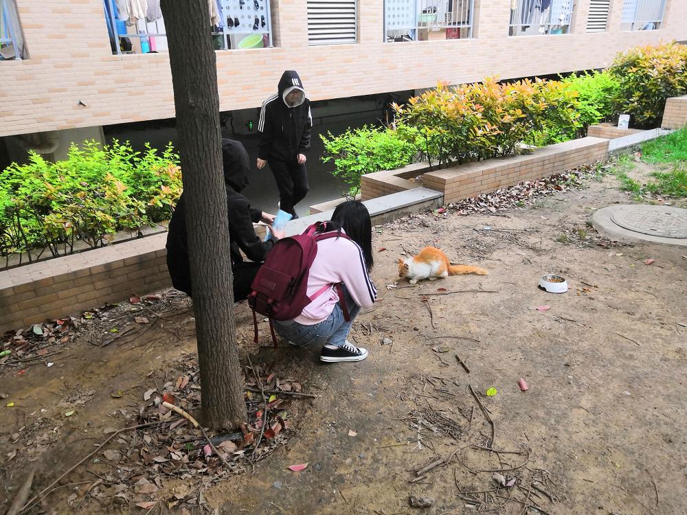 本次活动由心连心动物保健协会统一安排,4月27号下午负责人带领本协会成员来到流浪猫聚集场所,通过慢慢和流浪猫们相处,取得信任。刚开始时,流浪猫们还是比较胆怯,通过成员们的爱护和帮助,慢慢不再陌生,开始亲近并接受食物。此次活动,激发了成员的善意和爱心,让流浪猫吃饱饭,得到关爱。