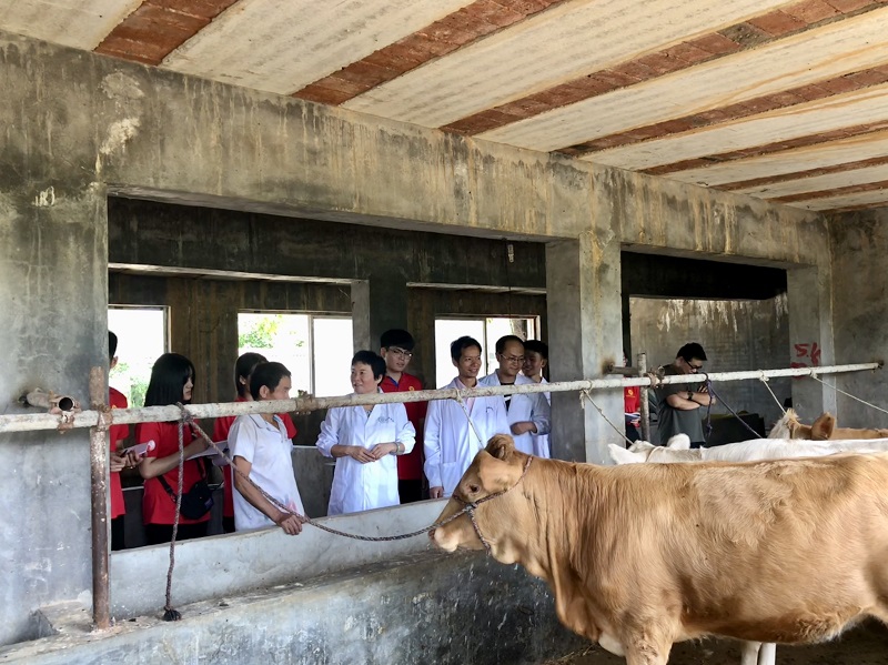 养殖产业是宜阳县董王庄乡前村产业扶贫项目之一,目前该村已有77户贫困户在发展畜牧养殖业,其中新增10户养殖大户,其他还有67家进行零星养殖。到达养殖户家后,养殖户首先给大家介绍了牛场的基本格局,初入牛场的社会实践队员们面对养殖有很多疑问,随后同学们便跟随石经理一起深入牛场,学习养殖和预防疾病的相关知识,对于牛的常见病以及处理方式进行了讨论和学习。经过参观,同学们也发现一些问题,比如,养殖户缺少科学养殖的知识,牛场的规划不够合理以及牛场的卫生安全设施不完善等。同时针对不同时期的饲养管理和应注意的问题等,石经理帮助养殖户制定了切实可行的帮扶措施,同学们一致认为不断的学习科学知识对于养殖业的发展有着至关重要的作用。