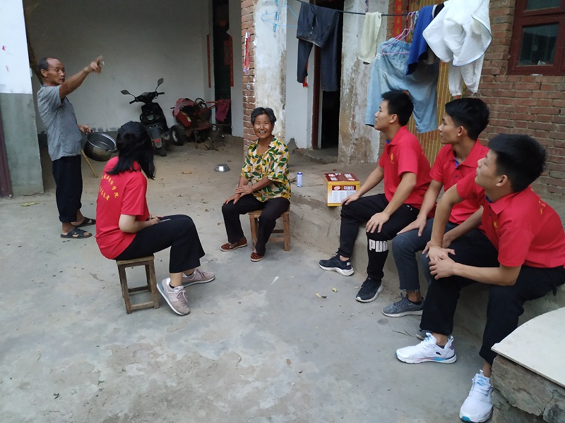 踏进其中一户老人家门,就看到一对骨瘦嶙峋的老夫妻,老爷爷在没有门窗的简易厨房中一手翻动着锅中的食物,一手吃力地掂着锅。老奶奶在院里轻轻地拨动着晾在绳上的衣服。看到志愿者们进门,急忙出来迎接,热情地招呼我们坐下。从老人的叙述中得知,儿子儿媳外出打工,家中除了老两口外还有一个年幼的小孙子,三个人相依为命,生活条件比较艰苦,在国家扶贫政策的帮助下,生活条件正在逐步改善。志愿者们和老人们唠唠家常、讲讲外面的事情,并叮嘱老人要注意保护身体,注意饮食卫生。慰问结束后,老人们不舍的将志愿者送出家门,挥手告别。