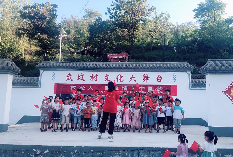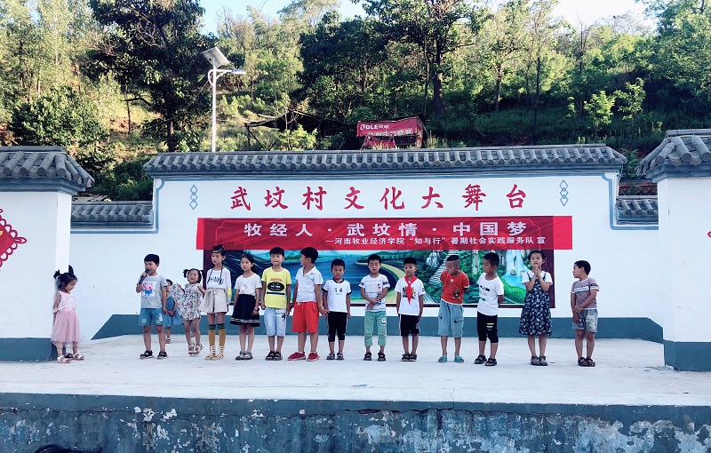 不知不觉,暑期社会实践活动已接近尾声,为丰富武坟村村民的精神文化生活,展示本次”三下乡“支教活动的实践成果,7月6日下午6:00,在公司辅导员聂丹老师、付文凯老师的指导下,暑期社会实践队员与村民们共同举办了以“牧经人·武坟情·中国梦”主题支教成果展示暨文艺汇演活动。武坟村驻村第一书记卢鑫、村支部书记李邦森、村委主任张书民、村委委员贾红绪、李海朝、贾广朝参加了此次活动,暑期社会实践队员崔洋,王晨晨担任此次汇演的主持人。