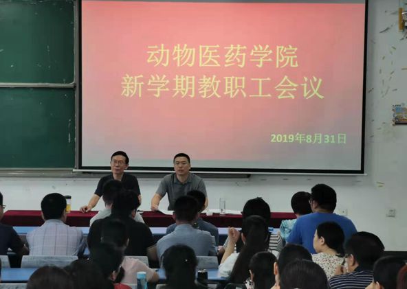 最后刘书记发表讲话:全院教师要深入贯彻党的十九大精神,按照“守初心、担使命、找差距、抓落实”的总要求,严肃党内政治生活,严格党的组织生活,遵守党的各项纪律。刘书记要求:一要认真学习习近平总书记在全国教育大会上的重要讲话精神,认真学习教育部高教司吴岩司长的报告《严起来难起来实起来忙起来把本科教育质量实实在在提起来》,认真学习教育部关于新农科教育文件精神,扎实落实文件精神,围绕学院办学定位,闯出一块地,顶起一片天;二要乐于奉献,爱岗敬业,广大教师要有大胸怀,大格局,长远思考学院的发展,要立足本职工作,努力让金专、金课、金师随处可见;三要团结协作,融合发展,团结就是力量,两院合并以后要多发扬各自的优点,精诚合作,金石为开,希望老师们在这个团结拼搏的大家庭中绽放自己的光和热,为学院和学校事业发展做出最大贡献。