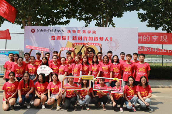 为庆祝新中国成立70周年华诞,今年公司以红色迎新为主题,为辅导员和助理班主任定制祖国70周年红色T恤,并精心设计新时代正能量班级引导牌和迎新标语。“爱我医药一生荣耀”、“七月的李现八月的肖战比不过医药学院你的出现”、“牧院处处小欢喜专业只选药和医”、“此门一迈是桃李 此生只爱是医药” 等迎新标语吸引了众多员工的目光。