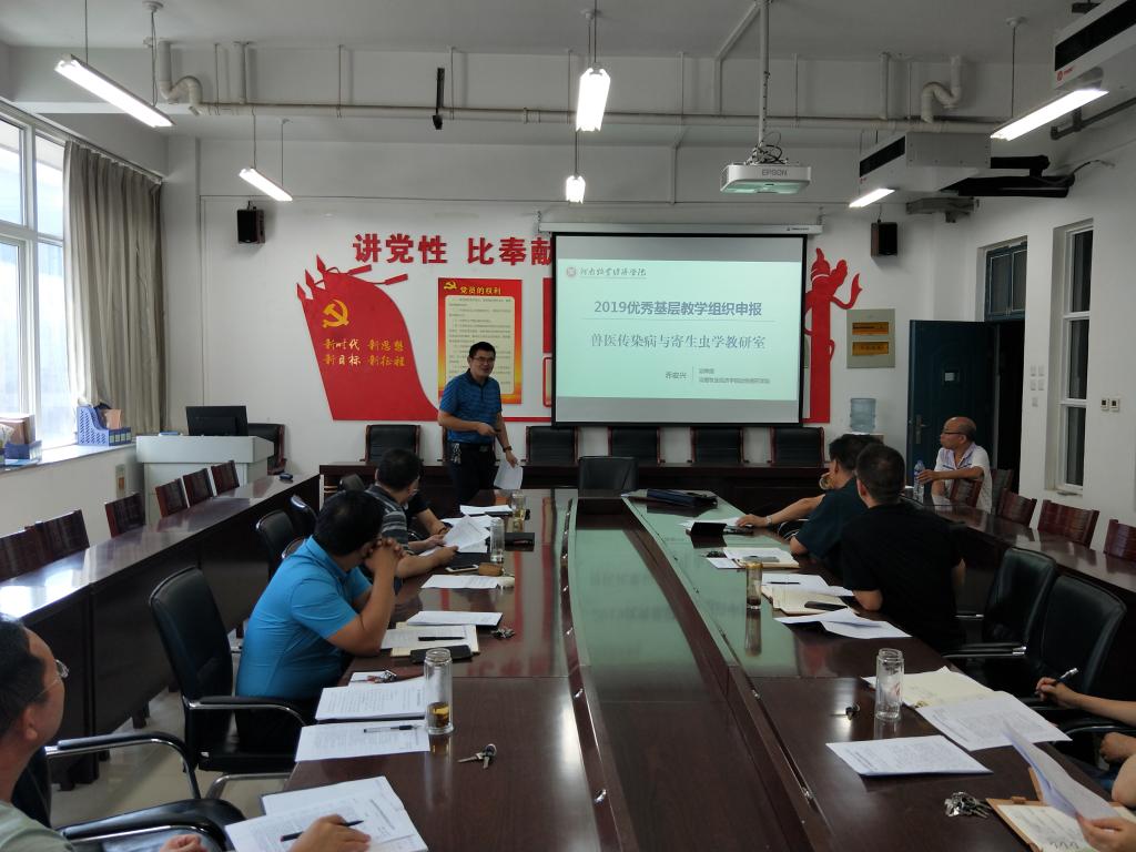 宋经理首先领学了河南省高等学校优秀教学基层组织认定标准,要求全体教研室必须全部达到合格标准,争创优秀教学基层组织。接着,经教研室主任汇报、民主测评等程序,从提出申请的三个教研室中推荐兽医传染病与寄生虫病学教研室代表公司参加学校2019年度河南省优秀基层教学组织评选。最后,宋经理对公司期初教学检查工作进行了部署。