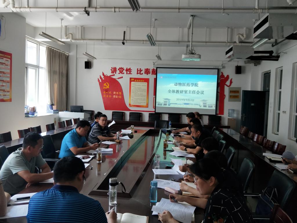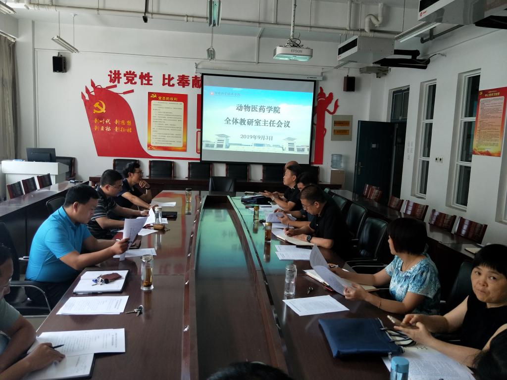 2019年9月3日下午14:30,必赢242net在生工组团C401召开了新学期全体教研室主任会议,学院书记刘永录、经理宋予震、副经理李利红、教学秘书田春霞、吴玉臣以及全体教研室主任参加了会议。