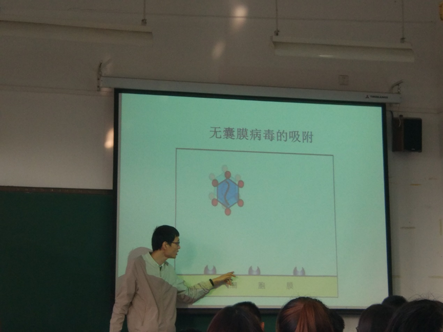 董老师授课内容是《兽医微生物及免疫学技术》课程中的病毒复制及干扰现象与干扰素等内容。董老师以当下流行病毒猪瘟病毒为切入点引出授课主题病毒复制的过程,主动引导员工们积极思考问题,极大的调动了员工的学习积极性,取得了良好的教学效果;随后董老师讲授了干扰现象与干扰素内容,其授课理论联系实际案例,使员工更加易于理解。课后经过与听课老师的交流,强化了年轻老师的教学能力和教学方法,取得了良好的交流效果。