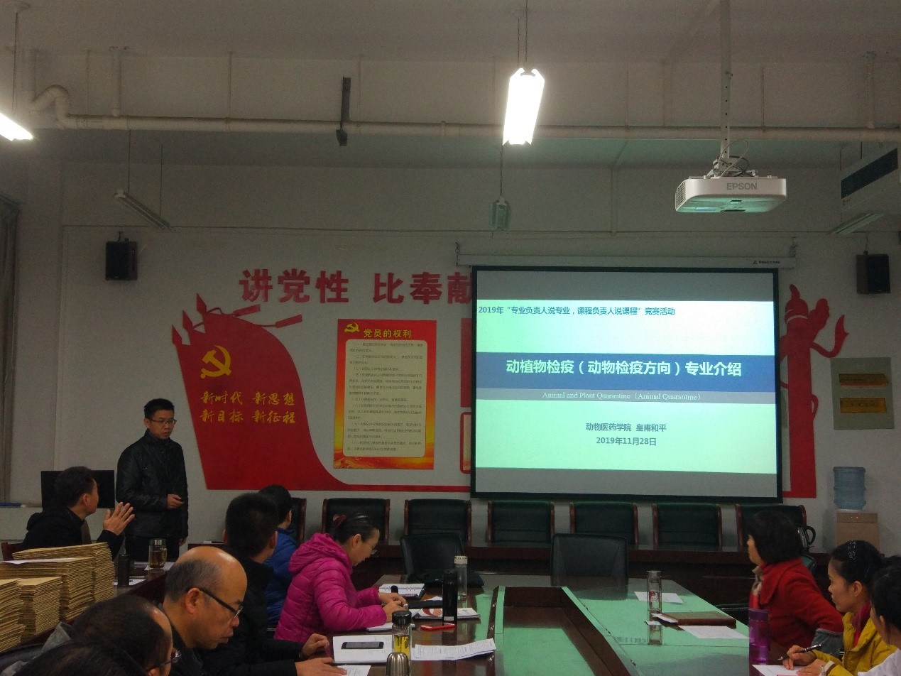 参赛选手分别就各自所代表的《动物医学》、《动植物检疫》、《动物药学》和《制药工程》专业的建设背景、人才培养方案的定位和模式、课程体系开发思路与措施、专业教学团队建设、实践教学条件建设、教学管理体系与制度以及特色与创新等方面进行了充分阐释,并提出了各专业近年来培养员工过程中所遇到的问题和改进方案。经过激烈的角逐,最终由宋予震经理摘得桂冠,皇甫和平老师获得二等奖,樊克锋和樊国燕两位教师获得三等奖。