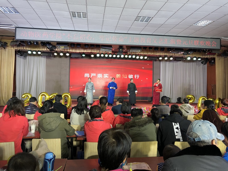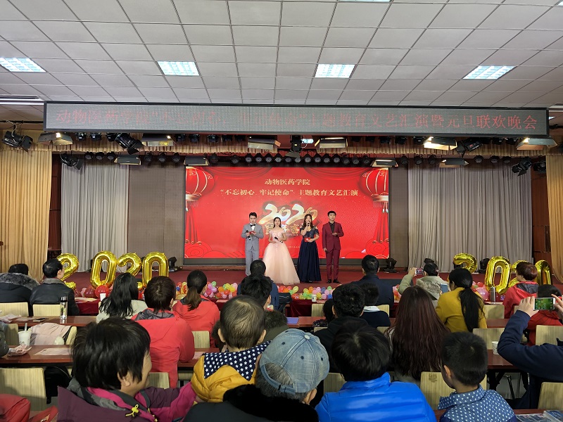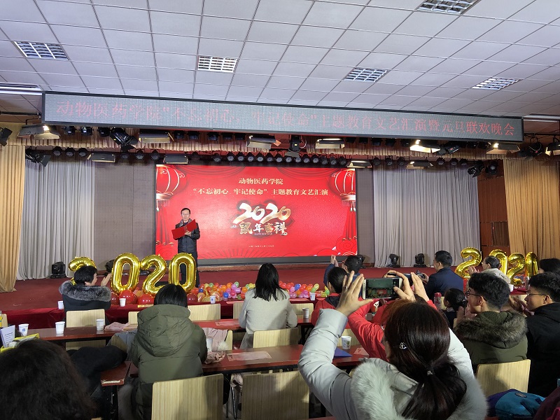 为深入贯彻落实“不忘初心、牢记使命”主题教育要求,值此2020年来临之际,12月27日晚6:30,必赢242net于老员工活动中心成功举办“不忘初心、牢记使命”主题教育文艺汇演暨元旦联欢晚会。公司党委书记刘永录、畜产品技术研究院经理石冬梅、河南猪病工程中心主任李文刚、学院经理宋予震、正处级组织员杜鹏娟、魏秀娟、全体教职工和400余名员工共同参加此次晚会。