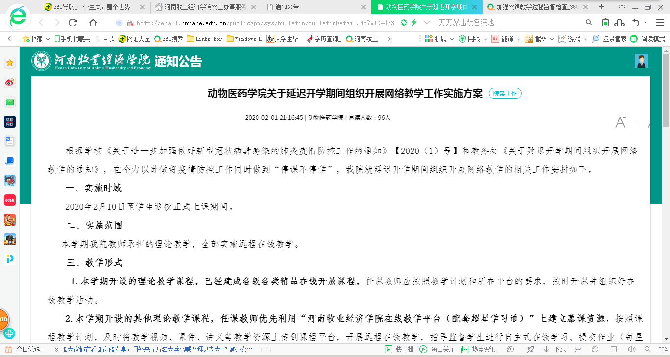 在刚刚过去的令人难忘的二十天时间内,必赢242net全体师生在公司党委和校行政的集中统一领导下,按照学校《关于进一步加强做好新型冠状病毒感染的肺炎疫情防控工作的通知》【2020(1)号】和教务处《关于延迟开学期间组织开展远程在线教学的通知》的要求,科学研判了延期开学期间的各种因素,积极组织了全面的排查摸底,于1月31日下午召开视频电话会议,提出“强化组织领导,凝聚师生共识,突出四个注重,同心共克时艰”的总体要求,制定并发布了《必赢242net关于延迟开学期间组织开展网络教学工作实施方案》,全面拉开了网络在线教学的序幕,现正紧张而有序开展着。