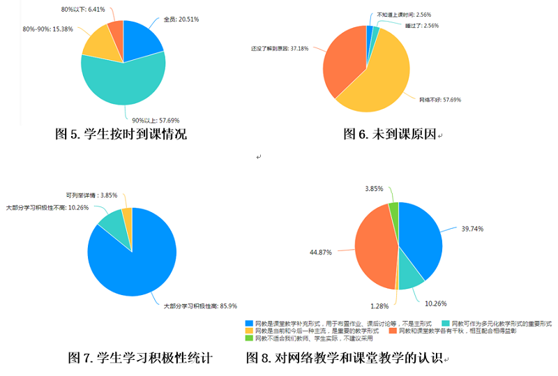 基于此,必赢242net明确提出“强化教学标准,做到“课程标准、四件齐备”;强化过程管理,做到“严格纪律、注重效果”;强化过程监督,做到“问卷调查、师生双线监控”;强化过程记录,做到“抓铁有印、踏石有痕”;强化总结提升,做到“PDCA循环,持续总结提升”。目前,网络教学实施过程中具体实施效果如何呢?