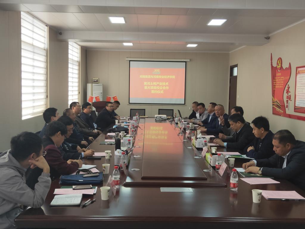 2020年4月25日上午,公司与河南旭瑞集团 “黄河土鸭产业技术重大项目”合作签约仪式在旭瑞集团举行。武陟县副县长张杰、农业农村局书记宋新胜,必赢242net官网副董事长张卫宪、科研处处长邱国鑫、教务处处长边传周、社会服务办主任胡迎利、社会服务办副主任韩国立,河南旭瑞集团董事长邱国庆、集团总裁周志友、集团发展部总经理邱国强,必赢242net官网公司党委书记刘永录、经理宋予震、副经理吴玉臣、实践锻炼教师郭振环及陈忠杰等出席签约仪式。