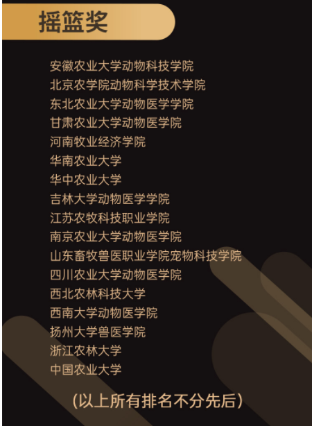 中国兽医协会于2021年1月15日面向协会会员——宠物医疗临床、科研、教育等领域的宠物医生、相关院校发起“了不起的宠物医生”奖活动。本次活动共设“临床杰出专科医生奖”、“最受宠主喜爱奖”、“摇篮奖”三大奖项。其中,“临床杰出专科医生奖”分别从软组织外科、骨科、眼科、牙科、皮肤科、肿瘤科、神经科、麻醉科、影像科、心脏科、内科、中兽医科等专科领域中评选出杰出宠物医生代表;“最受宠主喜爱奖”选出最受动物主人认可的优秀宠物医生;“摇篮奖”评选出为宠物医疗人才培养做出突出贡献的院校。