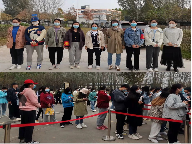 结合全市疫情防控工作形势,11月8日,龙子湖校区进行全员检测。为保证公司员工核酸检测各项工作有序开展,公司志愿者于早上七点到达图书馆北门,提前布置好检测场地,检测现场规范设置进口、出口、等候区、信息登记区、采样区、医废处置区等,为检测工作做好准备。针对天气寒冷因素,积极引导员工分批错时进行检测,部分志愿者作为信息采集员引导员工有序进行信息登记和核酸采集,全力配合医务人员的工作。部分志愿者在室外承担现场指引、维护秩序等工作,指引员工按顺序间隔一米排队,佩戴口罩,依次进行采样。冻得手脚冰凉,就跺跺脚、搓搓手,然后继续工作。采样结束后,志愿者们对医疗废弃物进行处置和样本交接。经过近7个小时的工作,顺利完成2650人的核酸检测。志愿者们冲在核酸检测的最前线,齐心协力,用实际行动为全员核酸检测的顺利进行贡献着自己的力量。