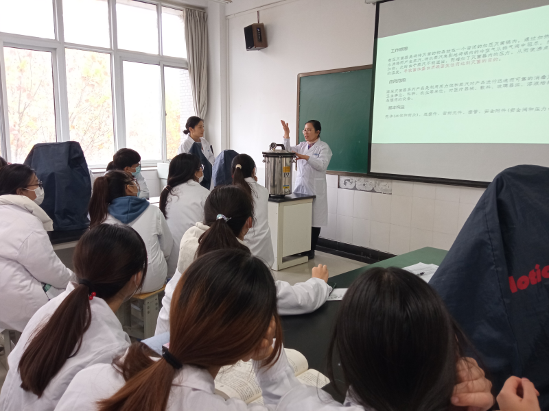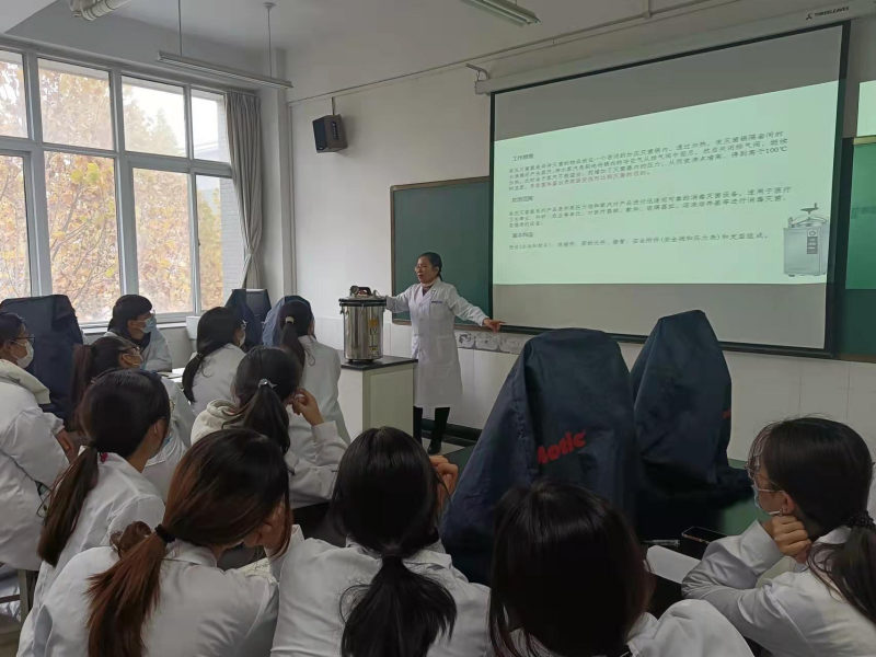 郭老师首先用生动的图片给同学们展示了各种灭菌仪器设备,包括干热和湿热灭菌设备。接着又详细讲解了压力设备的使用方法及注意事项,特别强调了科研实验室压力设备较多,人员流动较大,更要加强灭菌设备使用规范化操作。最后郭老师对实验室高压气瓶的使用注意事项进行详解,特别强调高压气瓶一定要固定牢靠,气瓶状态和气体类型一定要清晰明了。