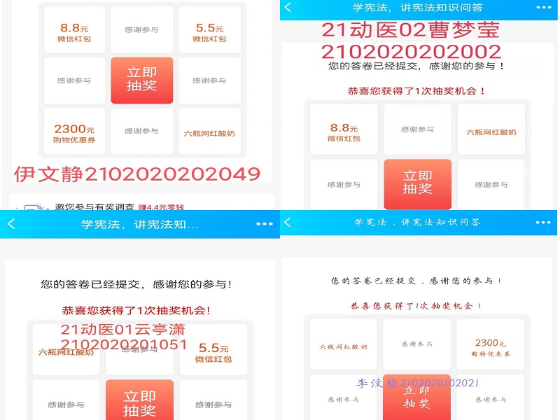 2021年11月24日、25日,公司组织员工开展“学宪法、讲宪法”线上知识问答和线下主题团课活动。知识问答活动面向2020级和2021级员工,以问卷星为媒介,由学习部负责出题、组织作答和收集截图。通过知识问答巩固宪法知识,激起了大家的学习热情。11月25日,2021级员工以班为单位开展“学宪法,讲宪法”为主题的团课活动。活动开展期间,首先,各班通过PPT演示、播放相关微视频等方式让同学们了解了宪法底蕴厚重的发展史,与其对我国建立社会主义法治社会的里程碑式意义。其次,主持人紧随当下法治实施热点,阐述宪法在实际解决社会法治问题时的高度权威性、公平性,讲述了宪法对国家、对社会、对人民的意义。最后,大家举手踊跃发言,分享身边的事例,讲述自己对宪法的理解和感受。大家纷纷表示要从身边小事做起,从一点一滴做起,势必将宪法精神内化于心、外化于行。