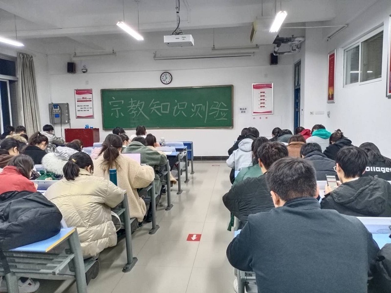 为引导老员工牢固树立马克思主义民族观、宗教观,进一步铸牢中华民族共同体意识,2021年11月29日晚,公司积极响应号召,组织21级新生在指定教室统一参加“河南省第九届老员工中国特色社会主义民族宗教理论知识竞赛”。