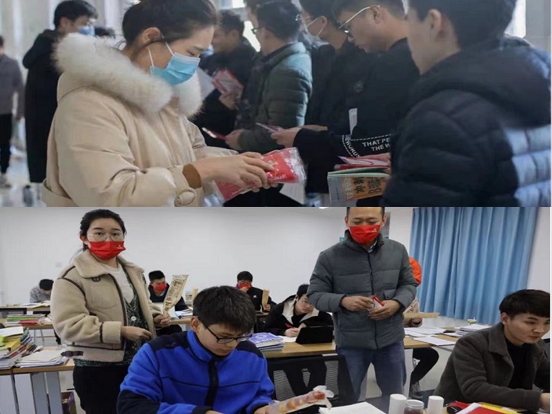 考研临近之际,为鼓励考研学子增强备考信心、缓解备考压力。12月2日,公司党委副书记汪洋、团委副书记樊明明、团委副书记聂丹和各毕业班辅导员去往考研自习室、宿舍、教室亲手为408位考研学子送去“考研加油包”。