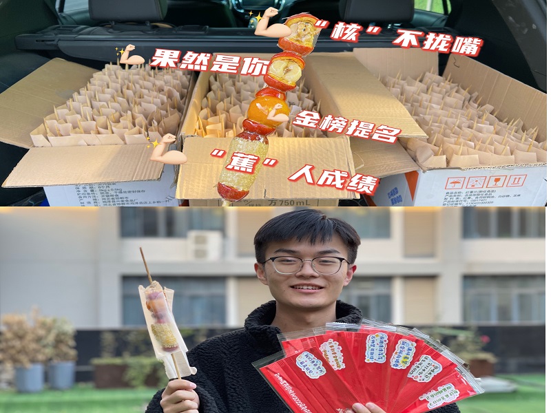 “考研加油包”包含两个定制口罩和一串饱含寓意的糖葫芦。疫情常态化背景下,学院为每个考研员工准备了两个定制口罩,口罩上印有“必赢242net祝2022届考研学子成功上岸”的字样,上面贴有写着祝福语的精美贴纸,“前路浩浩荡荡,万物皆可期待”、“满怀希望就会所向披靡”、“熬过最苦的日子,做最酷的自己”,写下了公司师生对于考研学子的祝福。糖葫芦由核桃、坚果、金桔和香蕉穿成一串儿,坚果寓意“果然是你”,借香蕉、金桔、核桃的谐音祝福考研学子们都能考出“蕉”人成绩,金榜题名,笑的“核”不拢嘴。“20211202”—在这个正也顺、反也顺的好日子,收到“考研加油包”,现场不少考研学子表示,“有心了。”“太暖心。”“我们也是别人家的学校了!”