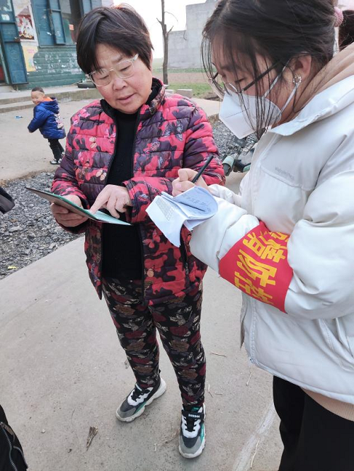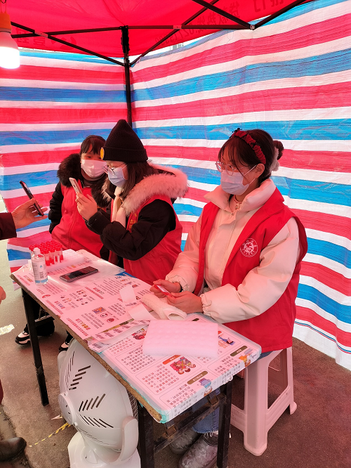 21动医03的赵思颍,志愿服务于河南省许昌市襄城县汾陈乡崔庄村村委会。刚开始她们的任务是给村中在其他地方的成员进行疫情排查,随后因为疫情的严重,她们又开始了在村口值班对出入人员进行信息登记,保证疫情不再蔓延,之后的任务是帮助医护人员给村内的人员进行信息登记,来帮助医护人员更快的完成核酸检测。“通过本次社会实践,我感觉我学到了很多,虽然过程有点曲折,但是收获颇多。这也让我也更加相信“星光不问赶路人,时光不负有心人”。在这场正在博弈的战役中,我们有理由坚信:有以习近平同志为核心的党中央的坚强领导,有全国上下的同舟共济科学防治,精准施策,我们就一定能打赢这场疫情防控阻击战,迎来春暖花开,万家祥和!我们志愿者也坚信,疫情不散,我们不退!”
