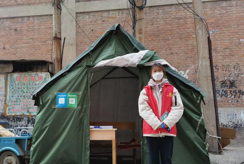 1月9号下午,南阳市淅川县上九路和西湾社区在群里招募老员工当疫情防控的工作者,21动医04的张娆果断的报了名。每天早上七点半冒着凄厉的寒风在大街上巡逻,提醒路上的行人要佩戴好口罩。她说:“这项工作看起来很简单,但是施行起来确实有点困难。有些路人提醒过后还是一副满不在乎的样子。接着的就是管理路边店铺的登记排队扫行程码的工作,最让我感到困难的就是卖猪肉的那一家,临近过年,肉是最抢手的,每天那家店的门口都有成群的人,每次都喊破了喉咙让顾客排队。但是每次都是喊一遍听一遍。不过纵使有再多困难,我也会努力把它做好!”