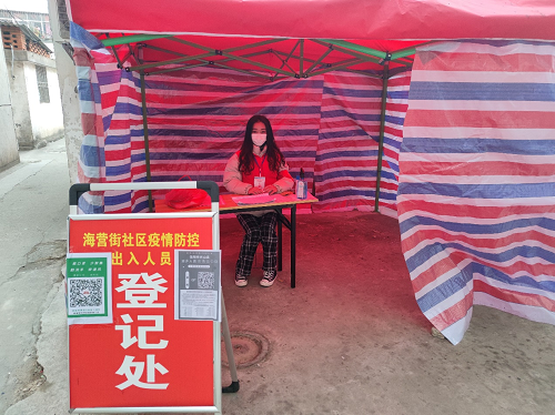 追随光,成为光。疫情反复,身在河南省汝州市陵头镇李窑村来自公司20动医06的田晓娜毫不犹豫的报名了志愿者。她的工作是在村口测量体温,登记信息,卡点执勤。也会去村办公室使用电脑整理人员信息,跟踪询问中高风险地区回家隔离人员的行程,并配合防疫人员进行核酸检测。她说:“这次活动,让我了解到志愿者服务活动培养我的不仅仅是一种精神,更是培养了自己的极限和耐力,同时也看到自己的潜力。当我们奉献自己一份力量的时候,心里会觉得很幸福,觉得终于为社会做了一点力所能及的事情。”