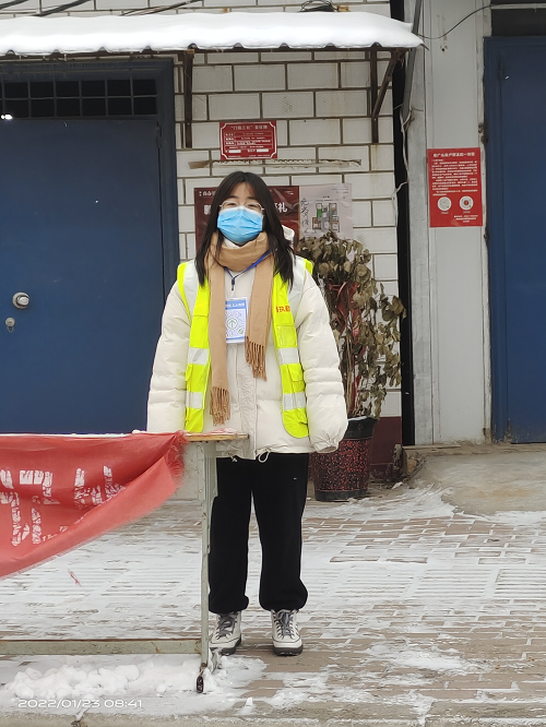 尽管在驻马店市几乎没有出现疑似及确诊病例,但是对于疫情工作还是非常严格。寒假期间,有大量外来返乡人员,为了在疫情中贡献自己的一份力量,也为了锻炼自己,我向所在驻马店市驿城区锦绣江南小区报名参加了志愿者。在参加志愿者活动的前几天,我还在家里附近的超市门口值日:查看进超市人员戴口罩佩戴情况与健康码。在我值日的那两天超市的客流量还是很大的,来超市购物的顾客也非常配合疫情工作,不仅主动亮出健康码,并且没有智能手机的老年人还主动登记信息。从2022年1月2日到2022年1月26日的上午9点至下午5点我加入到社区志愿者。值日时,正是最冷的时候,又刮风又下雪,来往的小区业主有很多都问我们冷不冷,保安大叔还经常让我们去屋子里坐会暖和暖和。尽管风很大天很冷,但是心里确实暖暖的。在志愿期间,返乡人员都很配合我们的工作。我认为正是我们大家一条心,相互理解相互配合,才能打赢疫情防护的狙击战!