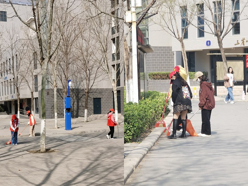 此次活动分为两部分。第一部分,由团委关兵峰老师带领20名志愿者对校园卫生进行清扫。下午三点,各个班级的志愿者们早早就集合在红色转盘处,接着按照分配好的任务穿行在校园的各个角落。志愿者们身穿红马甲,拿起扫帚清扫路面烟头和杂物,用垃圾夹拾起草坪中的垃圾,花丛中清理杂草及清扫校园各处死角。活动中,志愿者们相互配合,十分默契,不怕脏、不怕苦、不怕累,用实际行动深刻体会着雷锋志愿精神的伟大。第二部分,由各班团支书带领各班对自习室进行清扫活动。劳动现场,志愿者们有的认真仔细清扫教室地面;有的打扫同学们上课时遗留在教室边边角角的垃圾,打扫塞到暖气片、桌肚里以及各种死角位置的垃圾,有的将黑板擦拭干净,确保能给第二天上课的同学一个干净的环境。志愿者们干劲十足,互帮互助,没有抱怨,从始至终保持一种积极昂扬的态度,圆满地完成了本次志愿服务活动。