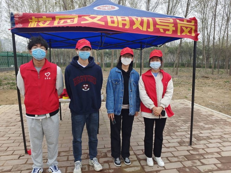本次文明劝导志愿活动,旨在保护学校员工安全,防止院内外人员无记录走动,减少安全隐患。公司志愿者负责在公司东门向北至家属院周围以及寝室楼附近工作。志愿者们在动物医院旁支起值班帐篷,摆放桌椅,作为值班大本营。每天早上七点半至晚上十点,志愿者们分组分时段,以固定卡点值守和流动巡查相结合的方式进行文明劝导。志愿者们身穿红马甲,头戴红帽子,认真巡逻,劝导员工不要翻越栅栏,防止校外人员翻墙进校,用实际行动做好疫情防控工作。同时在寝室附近值班的志愿者协助宿管阿姨监督同学们按照“前门进、后门出”的要求出入寝室,提醒大家遵守“非必要不出门、外出佩戴口罩、保持一米间隔”等防疫规则。