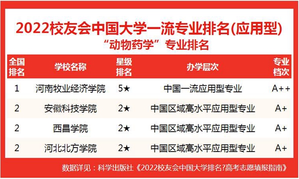 公司动物药学专业位居2022中国大学动物药学专业排名(应用型)首位