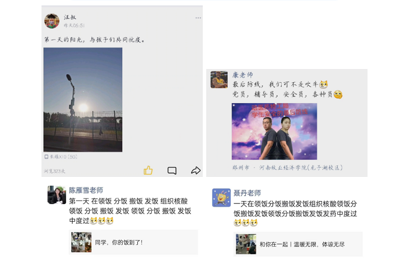 咚咚咚...半夜了,是谁在敲门啊?——嘘,别怕。是辅导员老师们来给你们送防疫“外挂”啦!呀!还是热的,谢谢老师,您辛苦了...尽管夜已深,但辅导员们尚未离去,用自己的实际行动关爱着同学们,始终与同学们同在。