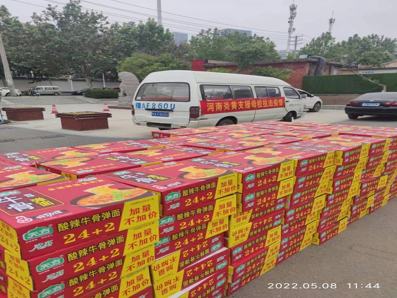 大爱显担当,同心共战“疫”。得知公司疫情防控物资紧缺后,爱心企业纷纷伸出援助之手为“疫情阻击战”捐赠物品、物资。河南丰源和普农牧有限公司向学校捐赠方便面300箱,500毫升消毒凝胶800瓶,防护服400套,医用外科口罩10000只;河南绿之源检测技术有限公司分别向学校捐赠方便面100箱;河南炎黄生物工程有限公司捐赠天方方便面200箱;郑州法莫净生物科技有限公司捐赠次氯酸消毒液3吨;河南银发牧业捐赠屠宰生猪8头……仍有部分企业捐赠物资在运送途中。这些爱心企业为维护校园疫情防控工作的顺利进行提供了重要的物资保障,以实际行动展现大企业的家国情怀和社会责任担当,彰显企业社会公益文化。