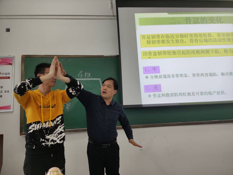 4月22日下午第五节,李红飞老师在二号教学楼A411进行了线下《兽医产科学》的交流型观摩课,授课内容为《兽医产科学》中的分娩部分内容。课上李老师首先回顾了发情、受精、妊娠等前期生殖生理学内容,以绘制的一张妊娠子宫模式图为切入点引出本次课程内容。课中,通过讲授分娩预兆、分娩启动、决定分娩的相关要素、分娩过程的内容等特点进行了展开讲述,并引入典型临床病例进行讨论、分析。李红飞老师备课充分、授课认真,员工课堂秩序良好,员工积极性很高,教学效果非常好。