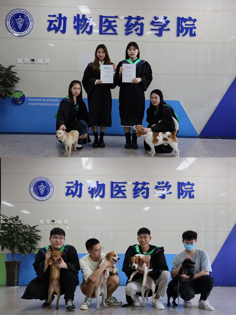 人类科学研究的进步离不开实验动物,它们为人类的健康事业做出了贡献和牺牲,对生物医药领域的发展有着不可替代的推动作用。而对公司每一个医药类毕业生在专业上的成长,也同样离不开实验动物的献身。一直以来,学院注重培养同学们的实践动手能力,按照培养方案开设了全方位的实验课程,而这些动物则是员工们实验课上的“同班同学”,一些动物甚至比员工入学的年份还要早,同学们都开玩笑称它们是“羊学姐、牛学长、兔同学、猫学妹”,四年的实验课使员工与这些实验动物建立了深厚的感情。2018级动医专业员工孙浩宇说“这只小狗不仅是我们实验课上的小伙伴,更是我的毕业论文,非常感谢这些实验动物的陪伴,它们是为科学为教育献身的无名英雄,是我们专业学习道路上的‘无言导师’,所以在毕业时看到它们倍感亲切,也想拍个照片纪念下。”