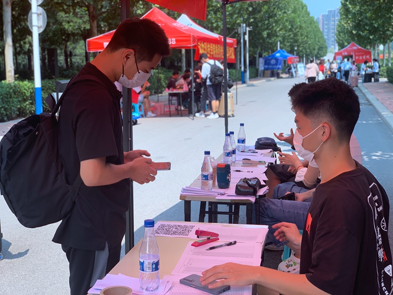 公司党委书记穆瑞杰、党委副书记李俊杰、副董事长张伟等领导来到公司接待点指导工作,详细询问员工的返校情况。对在场的老师及志愿者同学们表示深切的慰问,赞扬公司返校报到工作安排有序、流程少、效率高,肯定了各位老师的努力,并勉励大家要以高度负责的态度为员工提供良好的服务。