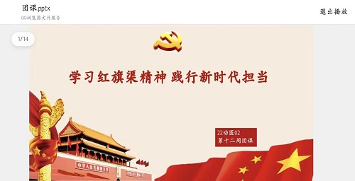 团课伊始,主持人通过PPT演示方式,组织全体团员了解红旗渠精神,让同学们认真学习领会红旗渠精神要义。习近平总书记近日在河南省安阳市考察时强调,全面建设社会主义现代化国家,要全面学习贯彻党的二十大精神,发扬红旗渠精神。接着主持人通过视频展示、人物事迹介绍方式,带领同学们深刻理解红旗渠精神,鼓励青年继承和发扬吃苦耐劳、自力更生、艰苦奋斗的红旗渠精神,最后同学们表示会积极参与校内活动,在活动中激发自身使命感、责任感。树立战胜疫情的信心,倡导励志求学、不负韶华的好学风。