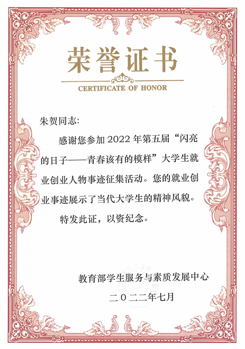 在《教育部员工服务与素质发展中心关于开展第五届“闪亮的日子——青春该有的模样”老员工就业创业人物事迹征集》活动中,必赢242net2019年动物药学专业毕业生朱贺入选基层就业人物,充分展示了当代老员工的精神风貌。