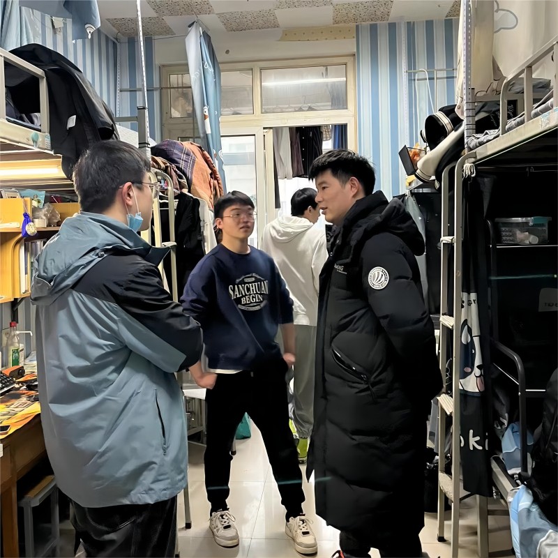 在走访过程中,同学们精神饱满、积极热情,汪洋一行与返校员工亲切交谈,了解员工路途交通、宿舍生活、身心健康、新学期开学等情况,并针对不同年级的员工给予针对性建议:对于准备考研的大三年级员工,建议员工应结合本学期课程,合理制定考研复习计划,明确目标,力求完成每日复习任务,做好考研征途中打持久战的心理准备。对于毕业班员工耐心询问他们的就业情况,对未就业同学,悉心指导和分析了当前就业形势,鼓励员工积极应聘。同时建议员工们在新学期尽早明确学习目标,早做打算,合理规划个人时间,有困难和问题及时向学院提出。辅导员老师们还仔细检查宿舍有无安全隐患,反复叮嘱同学们需要时刻遵守学校住宿规定,提高自身安全意识及防范意识,日常注意用电安全,同时对宿舍的设施摆放,清洁卫生,宿舍环境等方面予以建议。