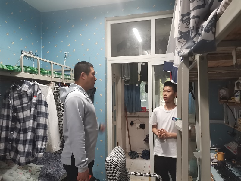 辅导员们分组进入员工宿舍与同学们进行了亲切的交流,重点了解同学们近期日常生活和身体状况、对学习生活的规划、就业状态及学校生活的困难等,要求员工要进一步增强安全防范意识,不可松懈对防火、防电信诈骗的警惕心理。走访过程中,汪书记强调同学们在校园生活中遇到困难一定第一时间向学院和老师们反馈,学院会积极帮助同学们解决困难。近期,校内极个别师生也首次出现了新冠病毒感染症状。辅导员督促同学们要清醒认识到新冠病毒并未消失,防控形势仍然复杂,绝不能掉以轻心,若出现新冠、甲流症状时,应立即做好防护,进入健康驿站接受观察治疗。