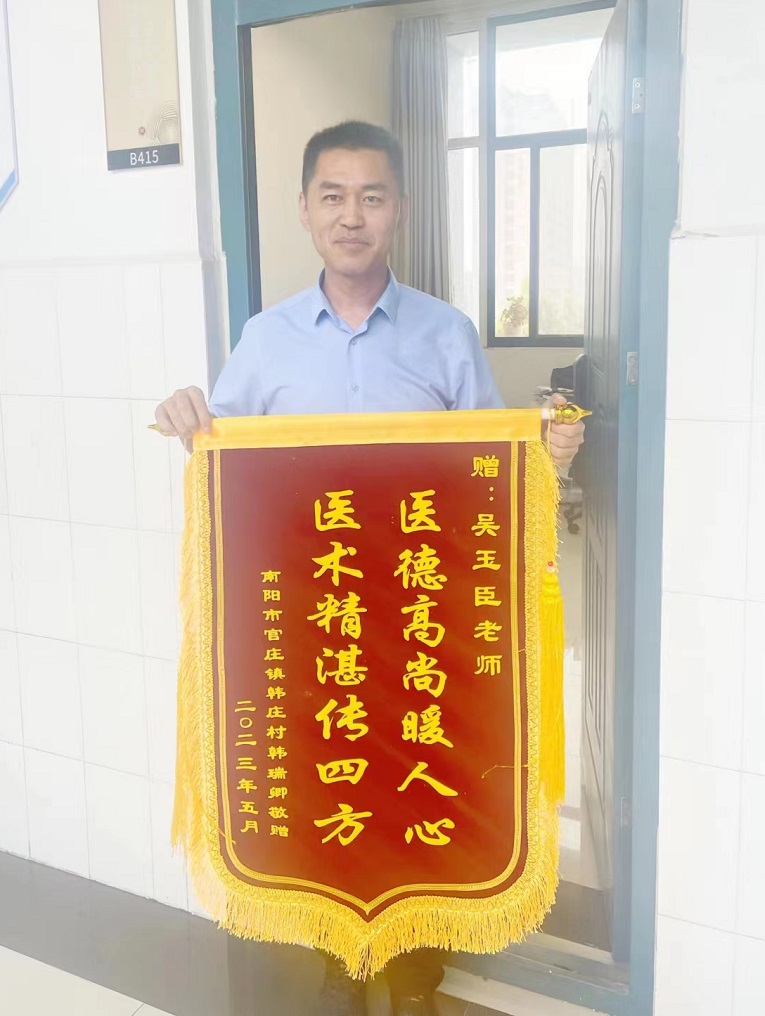 近日,公司副经理吴玉臣博士收到了一面内容为:“医德高尚暖人心,医术精湛传四方”的锦旗。