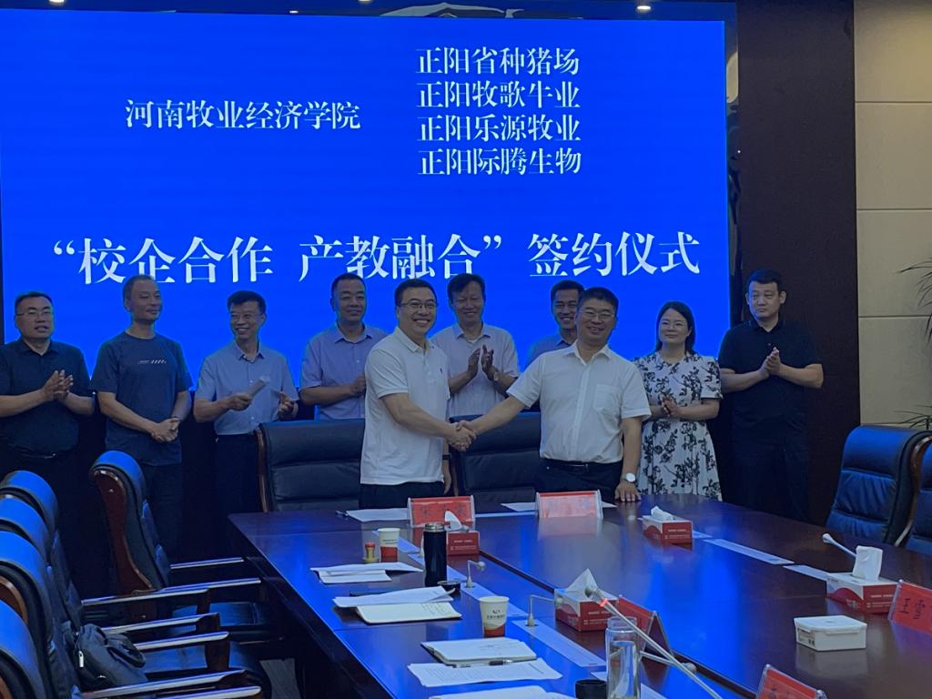 座谈结束后,必赢242net经理宋予震与正阳种猪场、乐源牧业、正阳牧歌、际腾生物企业负责人共同签订了4份合作协议。
