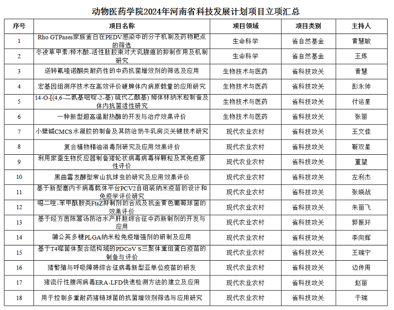 近日,河南省科技厅公布了2024年度河南省科技发展计划名单(豫科〔2024〕42号),公司有18位老师喜获2024年河南省科技发展计划项目立项,这是学院在省科技发展计划项目项目上的又一大收获。
